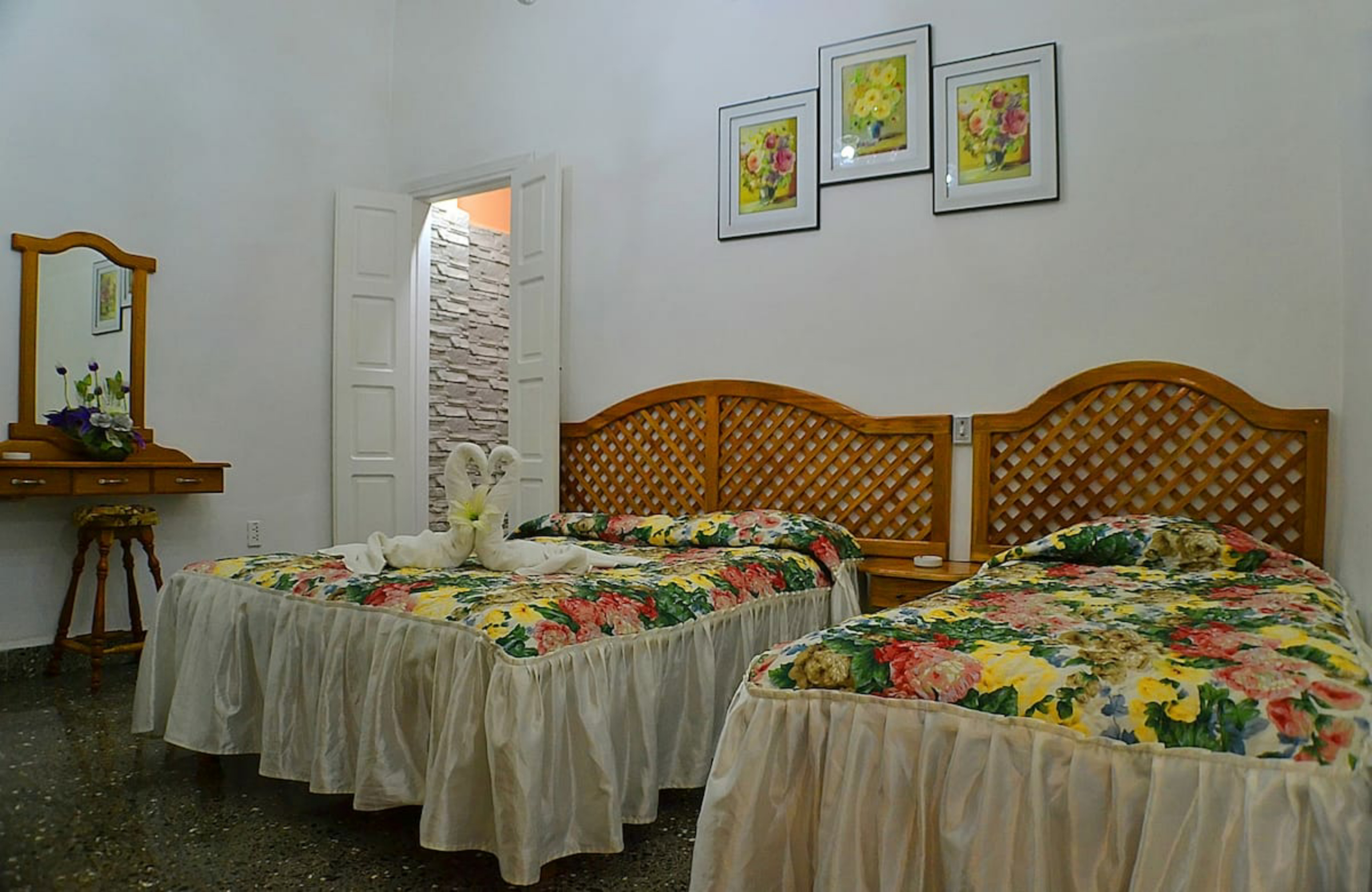 Hostal Yakelyn es el alojamiento ideal en Santa Clara. Confort, limpieza y elegancia distinguen nuestra casa, un espacio caracterizado por su céntrica ubicación, servicio personalizado y ambiente acogedor. Tenemos seis habitaciones privadas totalmente equipadas para que su estancia se mantenga libre de dificultades. Ofrecemos desayunos y cenas a la media de nuestros clientes, así como servicio de habitación las 24 horas. Una agradable sensación, es el sentir de los visitantes que llegan hasta Hostal Yakelyn, un lugar encantador, sorprendente por la amplitud de sus habitaciones y el lujo con el que están decoradas. Este inmueble encanta por su arquitectura, por la amplitud y distribución de cada una de sus piezas, la limpieza perceptible, así como la excelente atención y familiaridad hacia los clientes. Hostal Yakelyn es el espacio ideal en Santa Clara. No es un alojamiento más dentro de los tantos que existen en la ciudad. Esta casona destaca por su elegante ambientación, tranquilidad y cercanía al casco histórico de la urbe, elementos indispensables si quieres hacer de tu estancia en el centro de Cuba, un tiempo inolvidable.